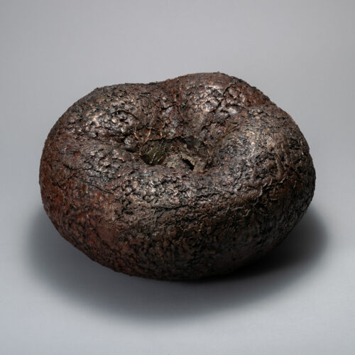 主に原型を蝋で作り、それを金属を置き換える真土型蝋型鋳造という鋳金技法を用いて制作しています。 金属に置き換える過程で偶然生まれた中心の造形を敢えて残し、自身が意図的に作り出した造形と融合させることを試みました。 金属が持つ意思を汲み取り、自身の意思と交わる所を探し続けています。 第81回記念金沢市工芸展 北陸放送社長賞